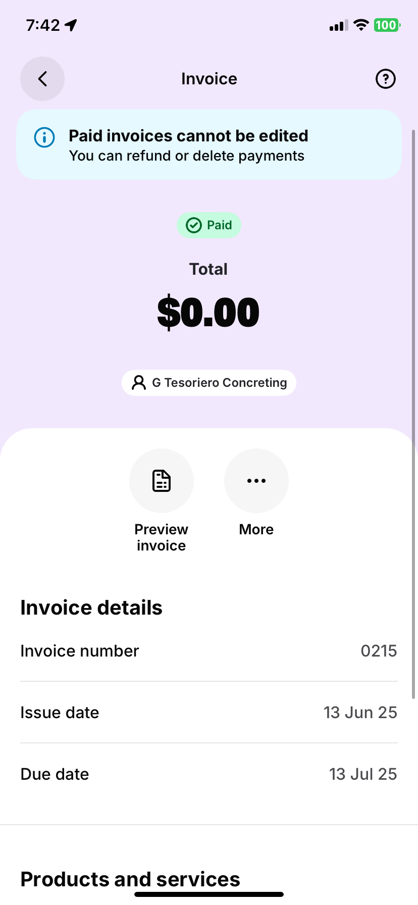 Speaking of accountants, did you know that if you've added your accountant or bookkeeper to Solo, they can go in and delete this $0 invoice for you. Give us a shout if you need a hand setting that up!