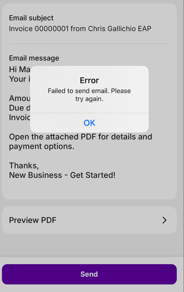 "I tried to send a test invoice to myself, but it didn’t go th...
