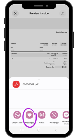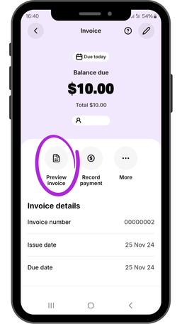 - If you’ve already saved the invoice or want to send a reminder via text, go to the Money in tab in the app and select the invoice you want to send.