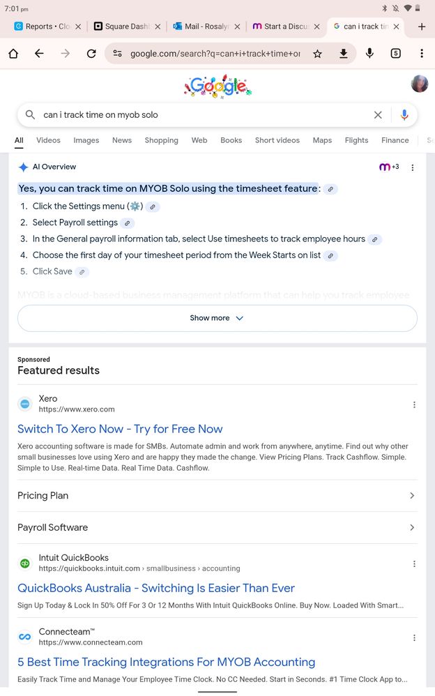I looked online as to if I could have a time tracker on solo and the web said yes! And that I had to enable it in my "settings" so I signed into My Account and could not do anything. I signed into MYOB Business to and no joy. So if this is possible, how?