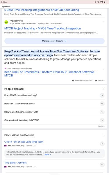 Oh my! It looks like the Google AI has got its wires crossed a little bit and seems to be confusing some of our other MYOB products with Solo, as Solo does not offer the timesheet feature. This does seem to be an issue on Google's end. However, we will notify our web team to see if there's anything we can do on our end to minimise the chances of this happening!