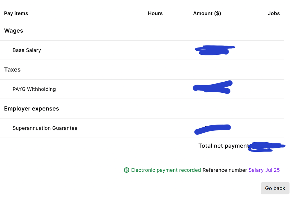 When I completed our initial payroll, MYOB was not set up correctly with STP and therefore this did not report the pay accurately and we are one pay cycle short for Q1. The payment was made electronically.