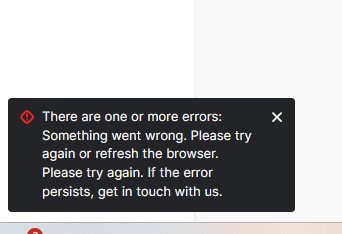 "There are one or more errors: something went wrong. Please try again or refresh the browser. Please try again. If the error persists, get in touch with us."