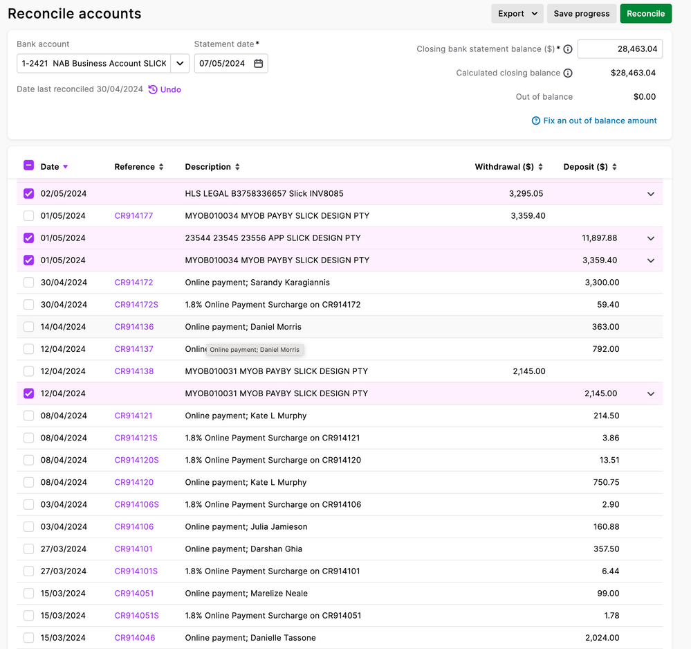 Looking at the transactions in your screenshot, figuring out what's causing the out-of-balance might take a few steps. I'd recommend following the steps outlined in this other thread to see if those transactions are supposed to be from a previous reconciliation.