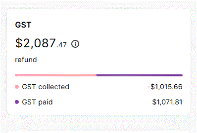 The GST balance on the Dashboard shows the running total of the GST balancing account (or GST collected/paid accounts) for the previous calendar month. This figure is based on the GST reporting setting under Report Settings > Business Settings and can be either a cash or accrual figure.