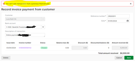 Regarding the error message you received, it means that the Spend Money transaction is part of a processed Prepare Electronic Payment. To correct the situation, you will need to delete the electronic payment first.