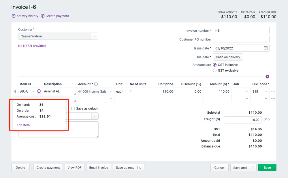 Improvement: Now you can check stock on hand quantities from invoices and other transactions