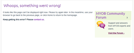 That "Whoops, something went wrong!" message usually pops up when your my.MYOB password contains some cheeky characters that the system doesn't like.