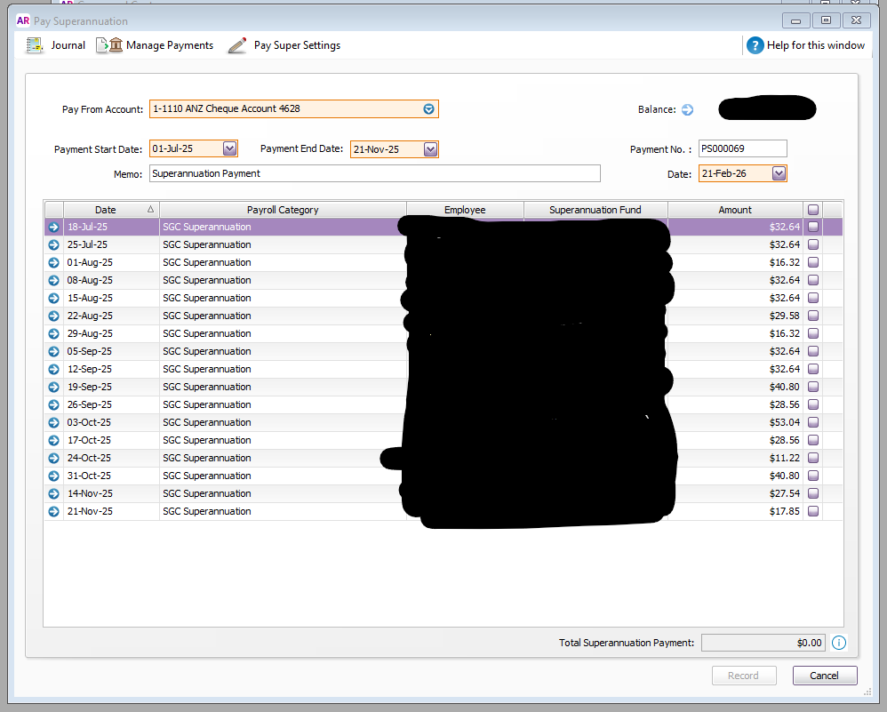 Could someone advise how I go about this please. SGC payments were calculated for a junior that didn't qualify for super. They are present in MYOB, but payments have never been Authorised. How do I remove them from this list?