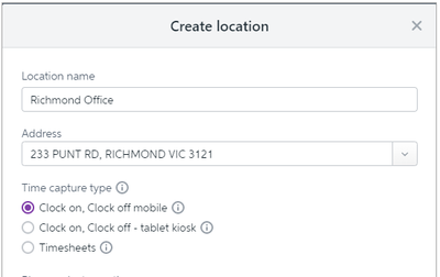 My apologies for the late response. To modify the Time Capture type in MYOB Team, the process involves deleting the existing Location and creating a new one with the desired Time Capture setting. You can set the time capture type when you create a location:The Help Article, Getting started with MYOB Team, has information on creating locations.
