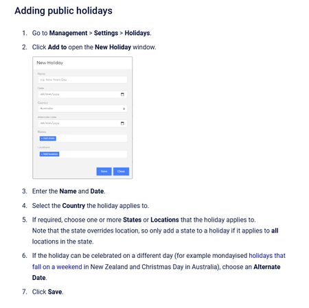 Hi I'm wanting to add public holidays into MYOB.  When I search this topic, it comes up with the following, which is great, but I can't find the 'Management' option.  Does anyone else know how I do ...