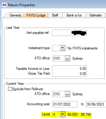 I think I may have found the issue. Would you be able to explain on this table and how to update it? I tried to change to Level 1, but when I reopen the return, it will go back to Level 4.
