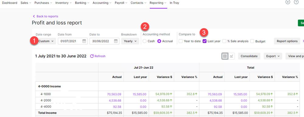 I am trying to print off the profit & loss - last year analysis report for July 2023 but it is reverting to July 2022.
