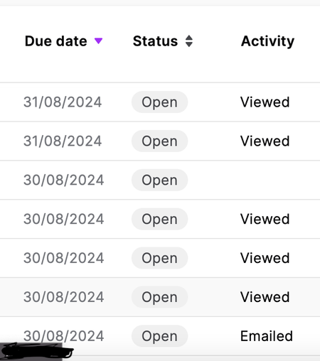 Sorry for the previous incorrect info provided by my colleague. This issue can be troubling as it leads to uncertainty over whether an invoice has been sent, requiring extra steps to verify its status. I've looked into it a bit more and found out that our it has been lodged as a known issue. There isn't a specific timeframe for a complete resolution at this moment. However, your account and post are marked so our team gets a heads-up about your email invoice status showing up blank even though the invoices have been sent. In the meantime, our support team's workaround is to send the invoice by email again, which gives the backend a nudge to update, refreshing the Activity column. Thanks a bunch for your patience.