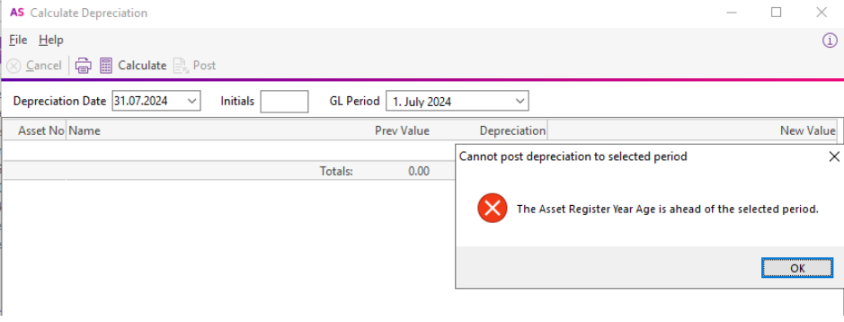 How to roll it back to the current year before calculating depreciation for July 2024.