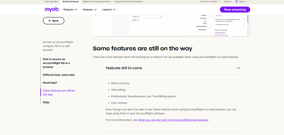 You're spot on having a look there— but just to clear things up, multi-currency's only available in AccountRight Premier. We aren't aware on any plans on the radar to bring it into MYOB Business at this stage.