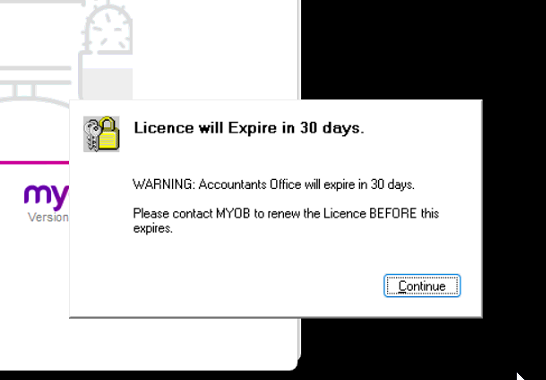 To resolve this, we will need to update your licence file (MYOBPS.MYL).