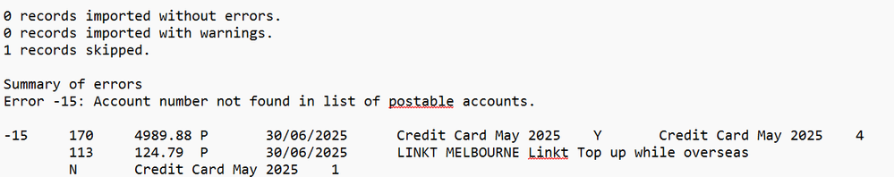 I'm trying to import a general journal, I've exported the template and updated with new data. However I keep getting an error -15 account not found. When I view the log the account numbers have changed. None of the accounts are header accounts and the GST balances in the excel version. What am I doing wrong, I've researched and changed things. I have large journals that I would like to import each month.