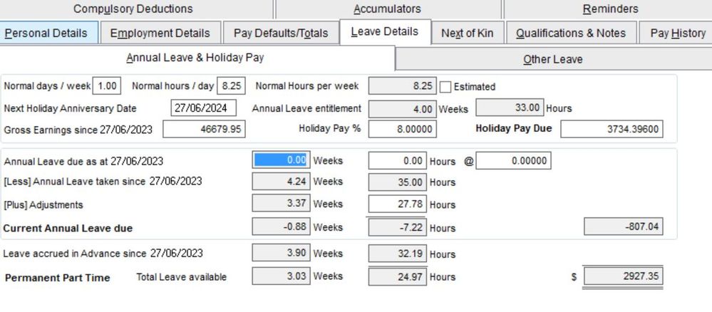 I need to be able to explain the change in hours and annual leave rate so i can ensure MYOB has calculated this correctly. However, i am not understanding how the system got to the new figures.