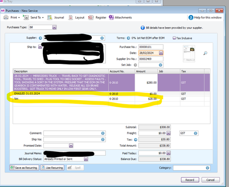 Myob to Myob link is still causing issues. When will this be fixed, an added line of tax is always added and has been happening for years. The correct amount on the invoice is $308 inclusive of GST. ...