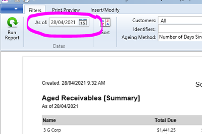 For the last couple of weeks, when I produce an Aged Receivables report (either Summary or Detailed) the amounts are correct but the "as of" date at the top of the report is incorrect. As this report is distributed weekly to our management team, I worry that this could be misleading.