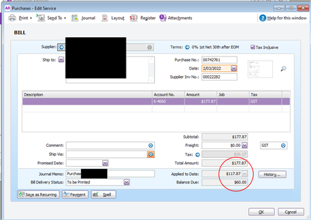 the history amount says 117.86 allocated to this invoice