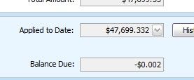 Generally speaking, the payment amount of a transaction would be 2 decimal places and thus the invoice's balance due amount wouldn't go into 3 or more decimal places.