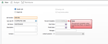 Issue: When attempting to delete a header job in our job list that is a sub of another header job, we encounter the following error: “An unrecognised error occurred - CommonRules_DoubleMaxValue” OR...