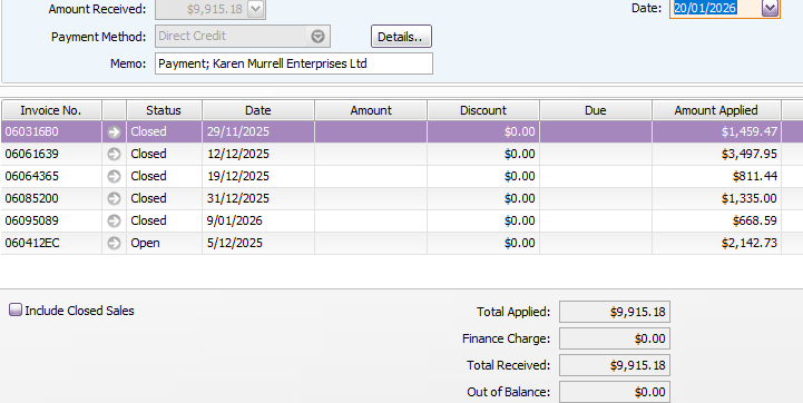 This will then show you all the ones close on a certain date (i.e.paid off with the deposit received from client).