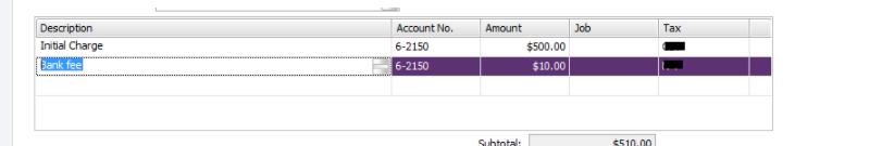 Generally, you can record a fee or additional amount to purchase by adding an extra line to the transaction for the required amount. For example: