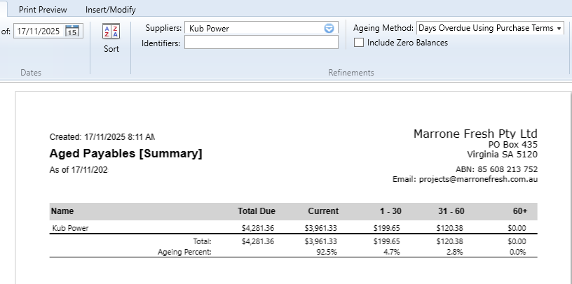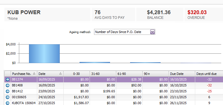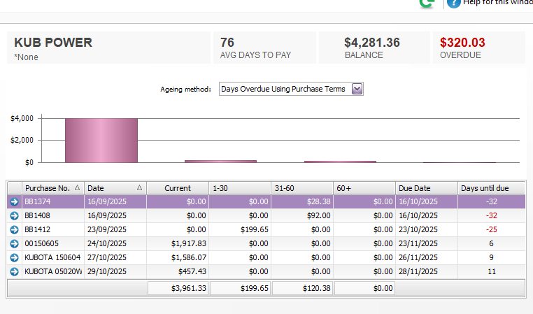 I have run a report for Aged Payables this morning using 'Days overdue using payment terms'. Which I run everyday without fail. Today a specific supplier has conflicting overdue amounts.