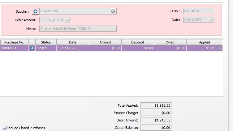 31/01/2022 PJ001030 Supplier return applied l: Debit from 00008100 0.00 0.00 ........