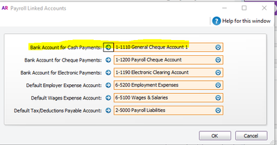 The first thing I would recommend checking is the Payroll Linked Accounts. You can do this in Setup>>Linked Accounts>>Payroll Accounts. Check that the linked account for Cash Payments is the bank account.