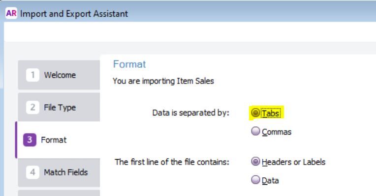 Once you've done the above and are importing the file again, kindly make sure to change the Import Format in Step Three to 'Tab' instead of 'Commas', see below:Feel free to post again anytime if you require further assistance.