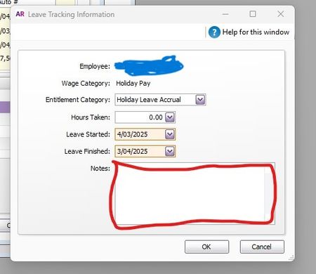 Since you've entered notes in the Leave Tracking Information field, you'll be able to view those by running the Entitlement Balance (Detail) report. Here's how to include those notes in the report:
