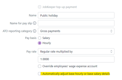 The hours automatically reducing when hours are entered in 'Public holiday' is due to a setting you've ticked in this pay item. If you open the 'Public holiday' pay item, you will see an option 'Automatically adjust base hourly or base salary details' - here you can untick this option if it does not assist you in your payroll. See example below: