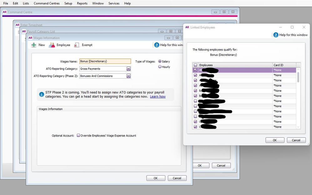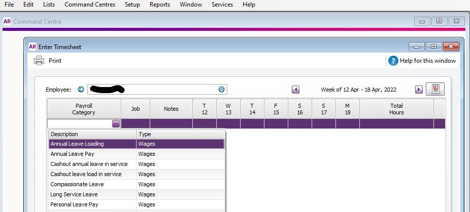 We then did another test by adding an existing payroll category (this time selecting Type: Hourly) to another employee, exit and relaunch, and it showed as available to be selected.