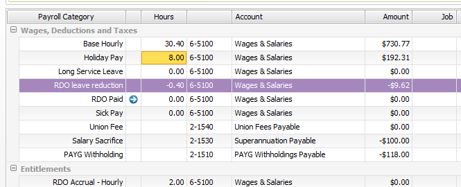 - Create a new wage category - "RDO Holiday Pay Reduction" (or something similar).