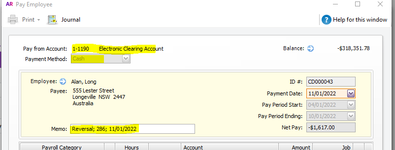 I processed wages, then had to do reversal, due to employee wanting his bonus wanting to be paid to super. Unfortunately, I'm still seeing this in Reconcile Accounts.