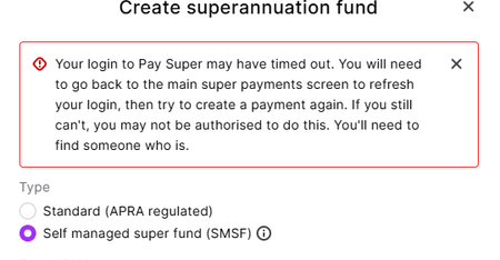 Hello, I am unable to add the Self-Managed Super fund to the Employee super fund details even when I have signed in to Super Login.