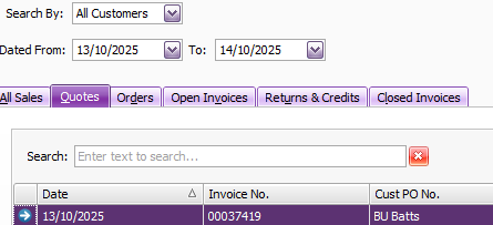 I don't know if this is a bug or intentional but since moving from AR Enterprise no-one is able to search for a quote by entering the quote number in "Find Transactions" on AR Desktop