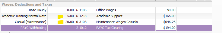 - A field in each employee's pay window that shows the total hours worked. This would be extremely useful when the employee's pay is split between multiple pay categories. See image below. This employee worked 5 hours for one department and 20 hours for another department. I would like to see in their pay screen that they have worked a total of 25 hours.