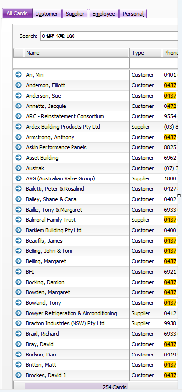 To search a mobile or landline number you have to put it in quotation marks otherwise it searches every possible combination of the numbers. While this might be handy on occasion where the number might be partially wrong it means too many results come up.