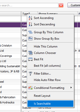 FYI for anyone interested. I just found a way to exclude the "Customer" & "Supplier" (Type) Field from searching.