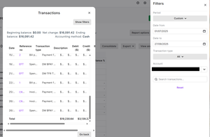 When drillling into an account in either Balance Sheet or Profit & Loss in MYOB Business (since the last update in Sept 2025), all we can see is very narrow columns that do not show any amounts.