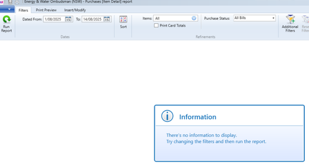 I'm really confused on this push to online payments breaking simply emailing my customers their invoices as we have for countless year. It says "you no longer have access to share your invoices. To continue sharing invoices and accepting payments upgrade now". Firstly, I only want to share my invoices, I don't want to "accept payments" through any system other than direct bank deposit. When I follow online instructions to turn off online payments, it tries to take me to the place where I have to register for online payments. So I have to register for a thing I don't want so I can turn it off the thing I don't want? And the registering system wants so much information, that's a no go from me. I really hope I'm missing something obvious and this is not reality, it's hilariously inept or anti-consumer as you are forcing me into something I don't want or will ever want. I simply want your program to just email my customers a PDF of the invoice (as it always has), that is all. Right now I'm exporting invoices as PDFs and emailing them myself manually, which is a ridiculously inefficient system.86Views2likes0CommentsPurchases Reports not working
