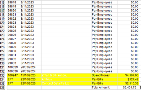 When I go into Prepare electronic payments I can only see the invoices to be paid be EFT (this is how it should be), however, when I go into the Print button at the top and export to Excel it also shows past payroll transactions from 2022-24 with zero payments. Currently, I'm deleting these (all 400 odd lines, which is annoying) but would like to know how I can get rid of them so only my invoices show when exporting to excelSolved55Views0likes3CommentsFound a bug with the InTray