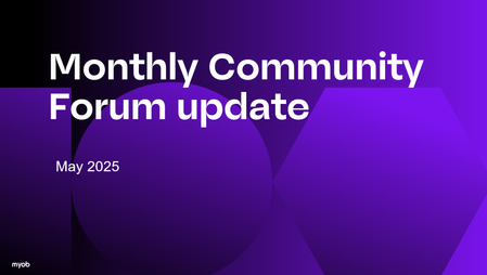 Another month down. This time it was Australian end of financial year, typically the busiest time for MYOB and our customers. Please join me in celebrating some of the successes of the forum, its members and its moderators. The main highlights are above We had a 10% increase in member registrations and a similar 11-12% increase in new discussions and replies in the forum. Overall this helps to show that during our busiest month, many visitors and members are able to find the information they need without posting a new question - love this! There are a couple of new names in the Member & Moderator highlights! AmandaMYOB , Princess_R and Mike_James are definitely not new names. These three continue to be an amazing force in the forum moderating discussions, replying to posts and giving advice. Thank you! The new names here are: Dave6 - joined the forum 3 years ago but in July appears to have rejoined us with energy! 20 visits to the forum, viewing 337 different posts. I'm glad to have you back with us, if you have any feedback on the forum, please reach out to me. The other new name was Julie_A_C Julie joined the Community forum 15 years ago! She is a Bookkeeper based in WA with 30 years experience and has been a partner with MYOB for 25 years. in July, Julie visit the forum 7 times but made a fantastic 16 replies to our other members, sharing her advice and expertise. Thank you! If you also have any suggestions as a long time member, please let me know. Whats new?? New content for our members New content this time is mostly targeted towards our Accountants and Bookkeepers in the community We have a new board for information about supporting customers using Solo by MYOB. Check out the Solo by MYOB for accounting professionals board We are also continuing to publish content and build our space for Partner Program members. Check it out here **If you get an ‘access denied’ error, please request access by leaving a comment on this board here Our ideas exchange for MYOB Business and MYOB AccountRight continues to have strong engagement. Check out the July summary from Amanda here Improving page content We are slowly working through creating multiple page templates for each area of the community forum. This is more of a design change but will allow us to present you with featured posts, links and widgets that are relevant to the part of the forum you are viewing, rather than showing the same information in all locations Thank you everyone!147Views2likes0CommentsCommunity Review - June 2025